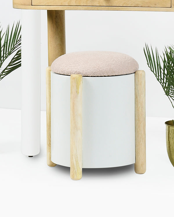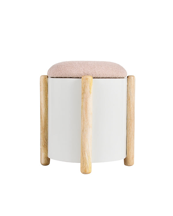 Handcrafted from premium mango wood, sturdy plywood, and cushioned with soft pink Brookley fabric, this storage stool is built for durability and everyday use. Its smooth, pale wood finish and sleek cylindrical design give it a clean, contemporary look that's perfect for kids' rooms, study spaces, living areas, or cozy reading corners.