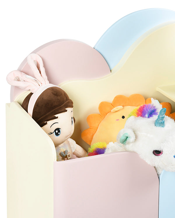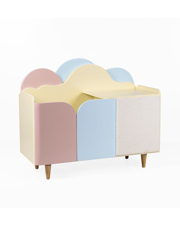 The smooth, rounded edges ensure enhanced safety for little hands, while the short, tapered wooden legs elevate the unit for a modern touch. Whether you’re styling a gender-neutral nursery, a pastel-themed bedroom, or a cozy reading nook, this cloud-inspired organizer is a delightful solution that blends seamlessly into your home decor.