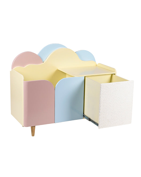 Bring joy and imagination into your child’s space with our Whimsical Pastel Cloud Wooden Storage Unit, a charming combination of function and fun. Designed with a dreamy cloud-shaped silhouette and hand-painted in a soft palette of pastel pink, pale yellow, and light blue, this storage unit adds a soothing, cheerful vibe to any room.