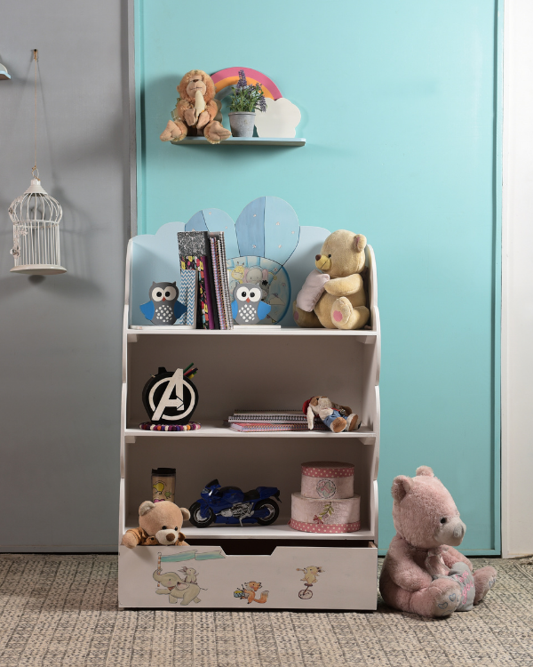 Transformed my kid's room with this hot air balloon bookshelf! The design is whimsical, and the pastel blue and white colours are delightful. With ample space and a sliding drawer, it's not just a bookshelf but a versatile storage solution. Highly recommended for a playful touch