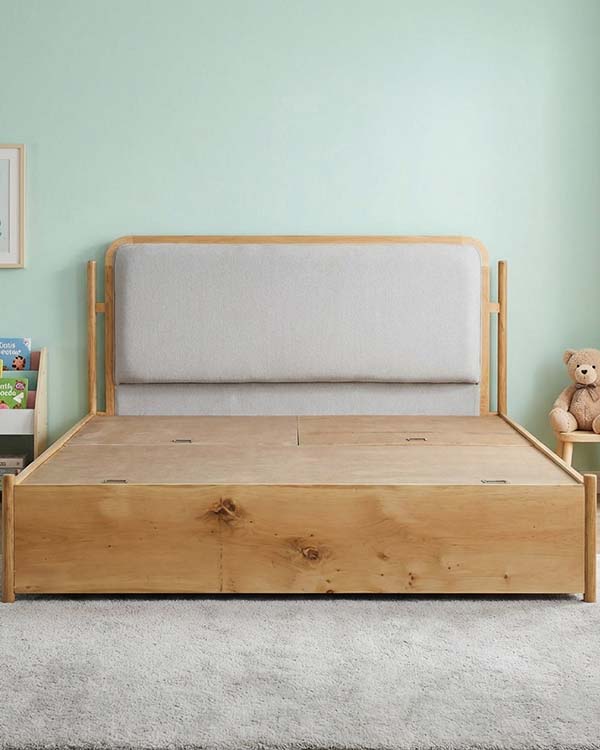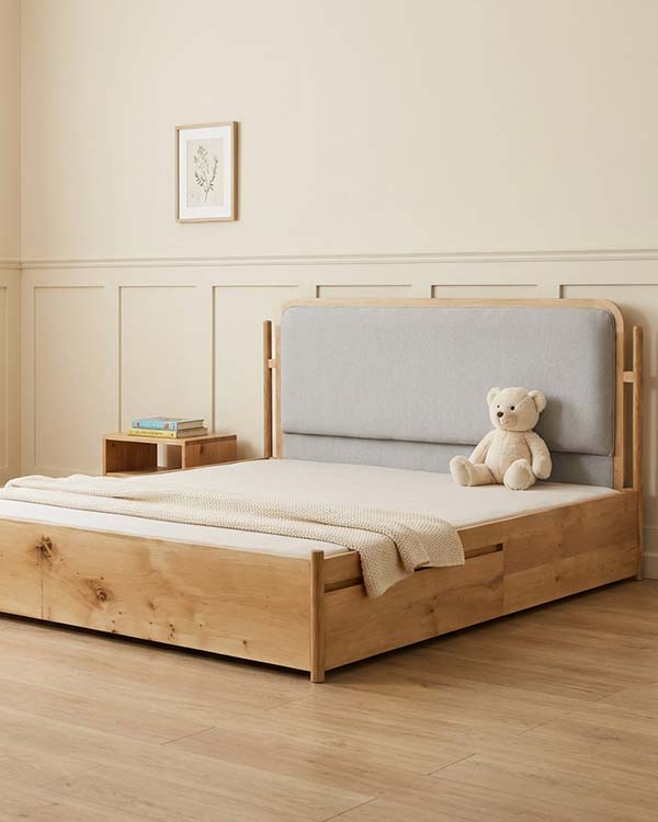 What truly sets this bed apart is its smart storage design. Built-in compartments within the frame help you neatly organize bedding, toys, and essentials without compromising on aesthetics. It keeps the room clean, open, and clutter-free.