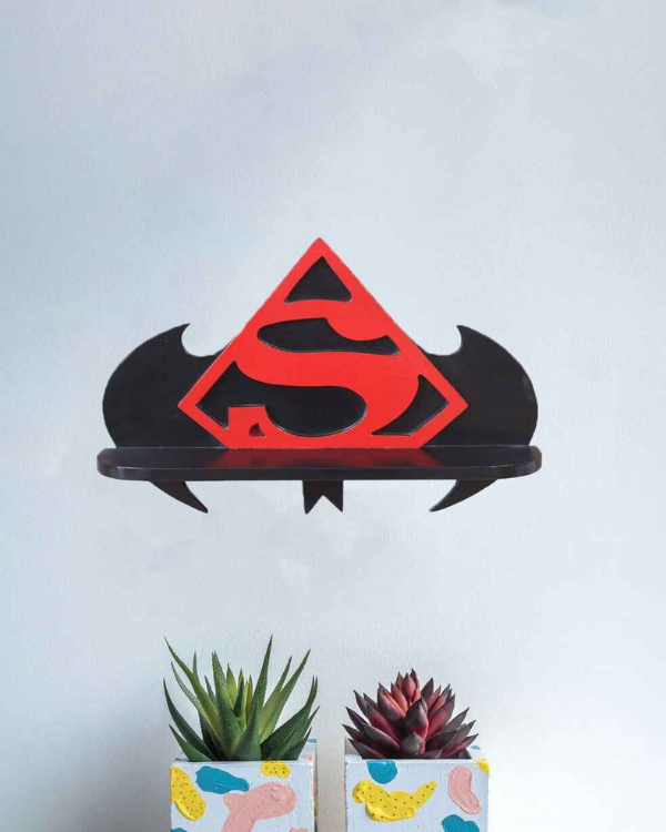 Expertly handcrafted from high-quality MDF, this shelf showcases the Batman silhouette in black with the Superman "S" emblazoned in a vibrant red. The striking contrast makes it one of the most unique wall decor items for living room or any kids’ space.