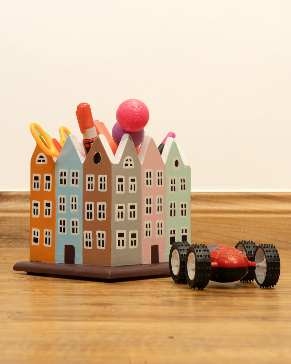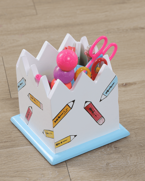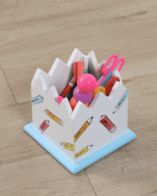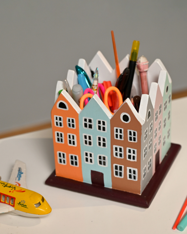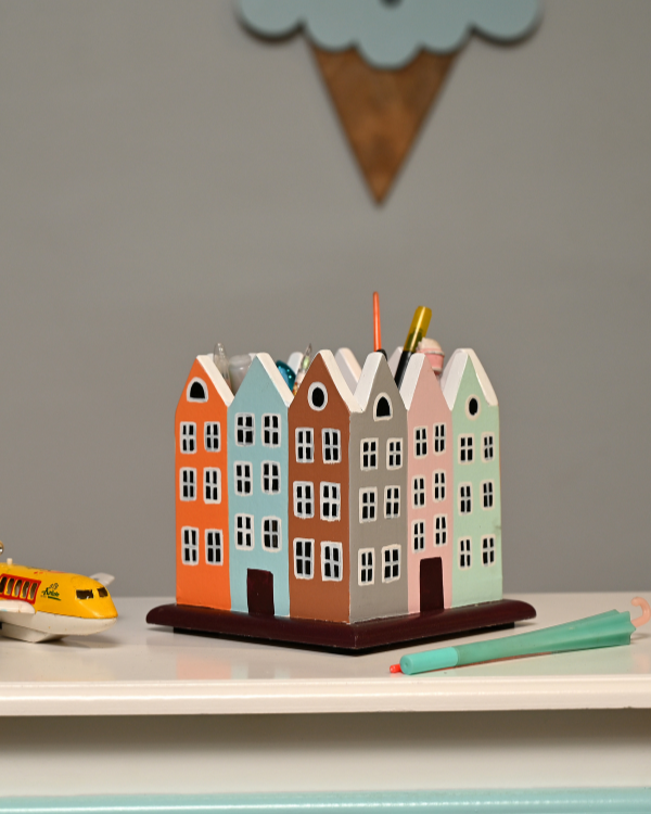 We hand-painted these small building-themed kid's stationary organizers or pen holders. This multi-functional desk organizer is made of high-quality MDF, as well as water-resistant and non-toxic paints, for the child's safety and a well-crafted finish with good durability. This desk organizer contains a single compartment for pens, markers, pencils, and paper clips, as well as a single section for managing your kid's stationery requirements. This is also a fantastic teaching tool, as youngsters can learn how to clean and start organizing their cluttered desks with the help of a cute tiny building stationery organizer. Because of its correct size, it can be used on any desktop. Offer this fantastic stationery organizer to your child and make them happy; it comes in two gorgeous colours for your kids.