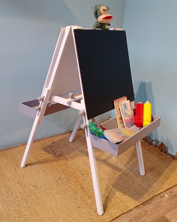 It's the 2-in-1 kid's drawing board for your children's creative needs made from mango wood and MDF. Both a blackboard and a whiteboard are where your kids can easily turn. One side is suitable for chalk, and the second side is for markers. Drawing is an important channel for children to express their feelings. For those who do not have verbal skills yet, drawing helps develop manipulative skills that will assist children to write quickly. Safeguard your walls from your kid's drawing and keep your children occupied and gadget-free with this wonderful product and a perfect gift for children.