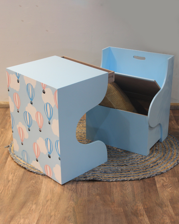 The unique convertible design seamlessly switches from a compact box to a fully functional kids' study table with a chair. Therefore, it's perfect for small spaces. The chair tucks inside the table, which allows for easy storage and mobility.