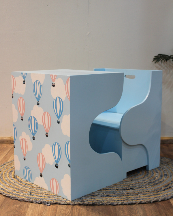 Turn your kids study time into an adventurous journey with this adorable hand-painted pastel hot air balloon study table and chair set! It features charming illustrations of hot air balloons in soft pink and blue hues. This transformable study combo set creates a whimsical and serene study space for young learners.