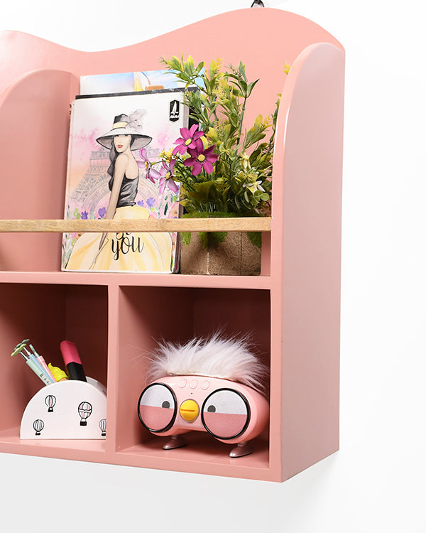 Playful Pink Wall Bookshelf—Scalloped Design | Hanging Storage Shelf