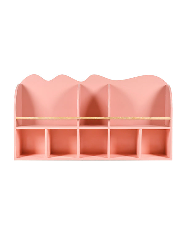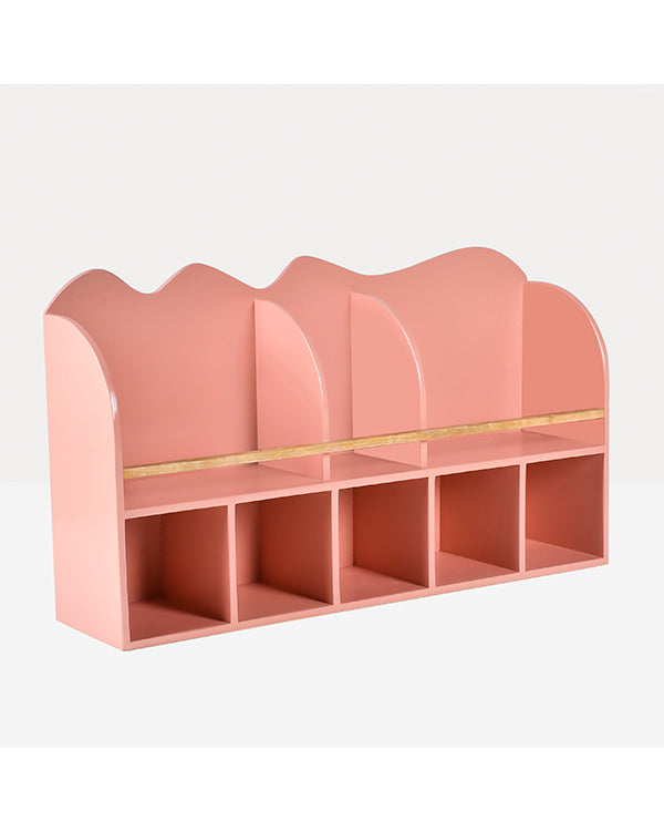 Made from premium mango wood and durable MDF, the bookshelf is finished in a soft mauve pink tone that brings warmth and color to your child’s space. The top section includes three arched compartments—perfect for displaying your little one’s favorite books, stuffed toys, or collectible decor.