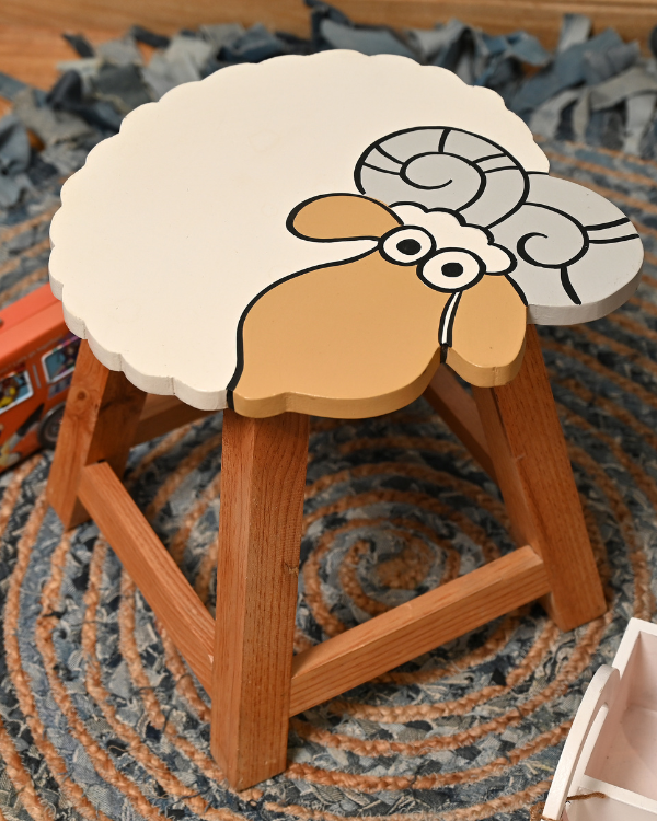 Introducing our adorable Wood Seating Stool with a bighorn sheep design, perfect for adding a touch of charm to your living room or bedroom.
