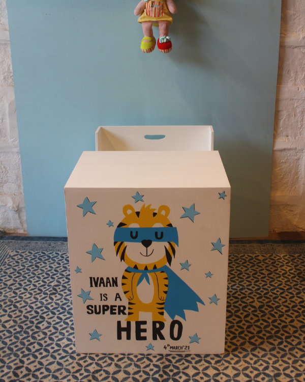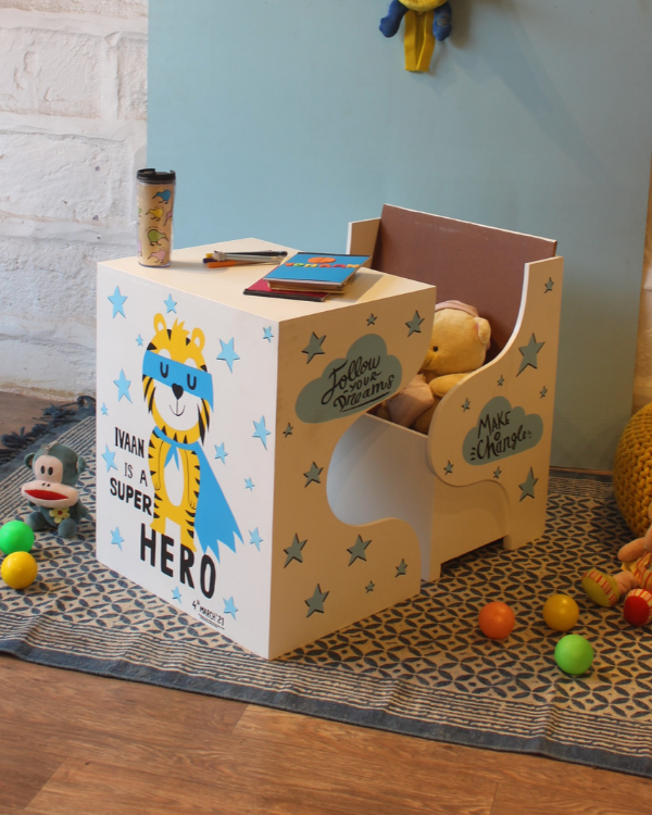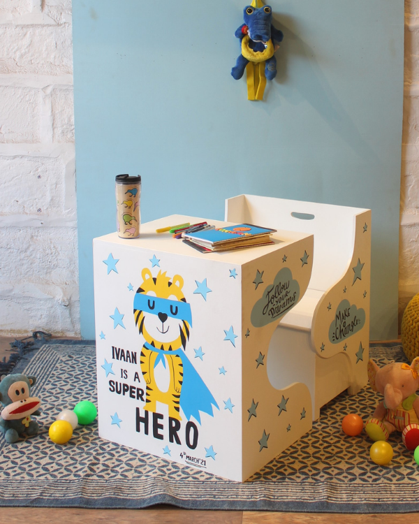 The Super Tiger Hand-painted Design for Study Table Combo Set is perfect for children who dream of becoming their own superhero.