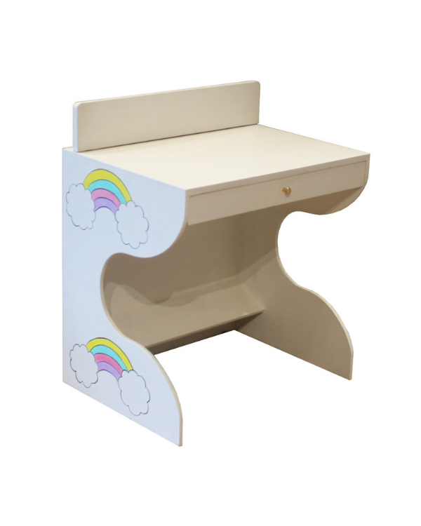 Designed for comfort and convenience, the set includes a luxurious velvet cushion. This ensures plush, irritation-free seating, allowing your child to study, read, or play comfortably for hours. Plus, the pastel cream background, combined with rainbows and fluffy clouds on the sides, creates a serene and enchanting atmosphere. As a result, it sparks creativity and imagination.