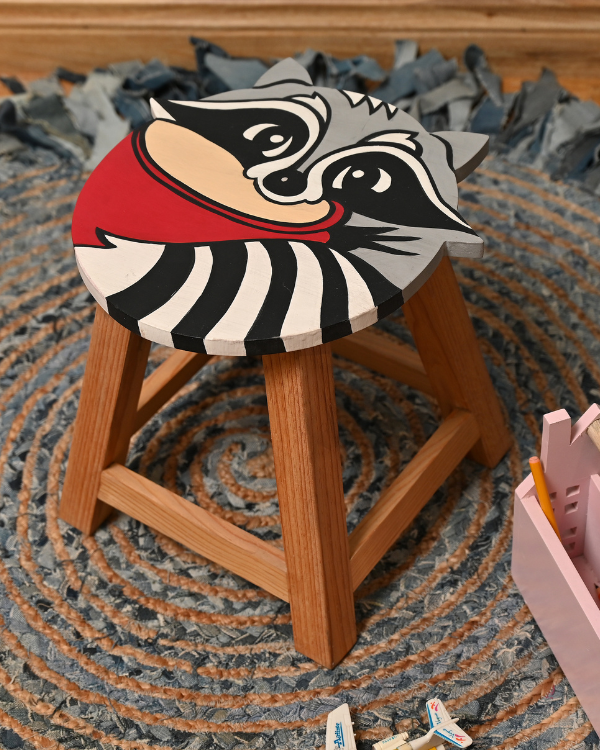 Adorable Raccoon Wooden Seating Stool - Handcrafted, High-Quality Mango Wood