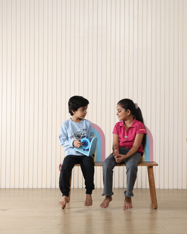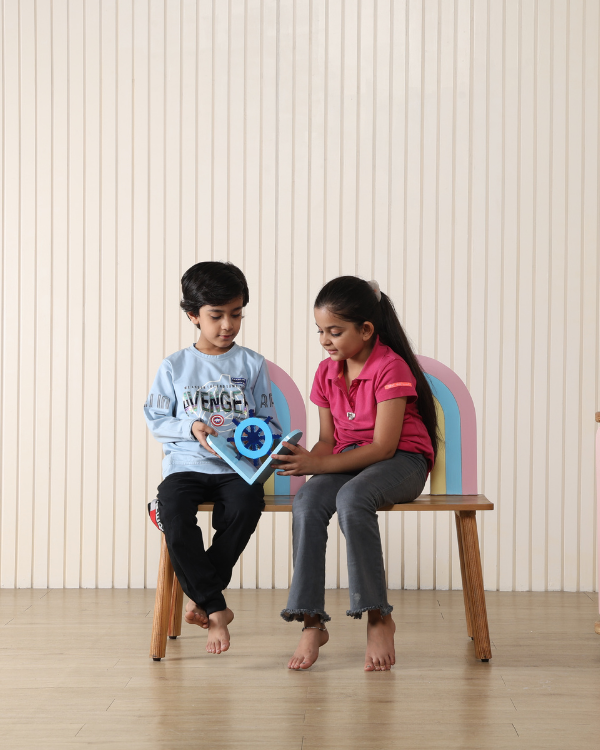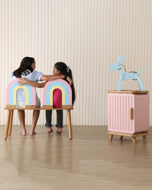 Although lightweight, this sturdy wooden chair remains stable and easy to move. Additionally, it is coated with non-toxic, child-safe paint, promoting a healthy environment for kids. Whether you're looking to buy chairs online for study or play, this beautifully crafted rainbow bench is a must-have for creating a fun and engaging learning space.