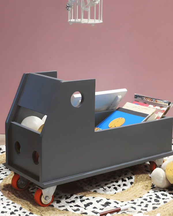 Dolls house a miniature truck book cart for toddlers. This cute little book cart would be fantastic for the kid's nursery or toy collection. Inside it is one compartment where kids can keep their toys and books. The cart has four little wheels to slide or move easily anywhere in the house or nurseries, and because of its lightweight, a tiny person can easily pull their favourite books along with them! Gift this truck book cart to your kids and bring a sweet smile to their faces.
