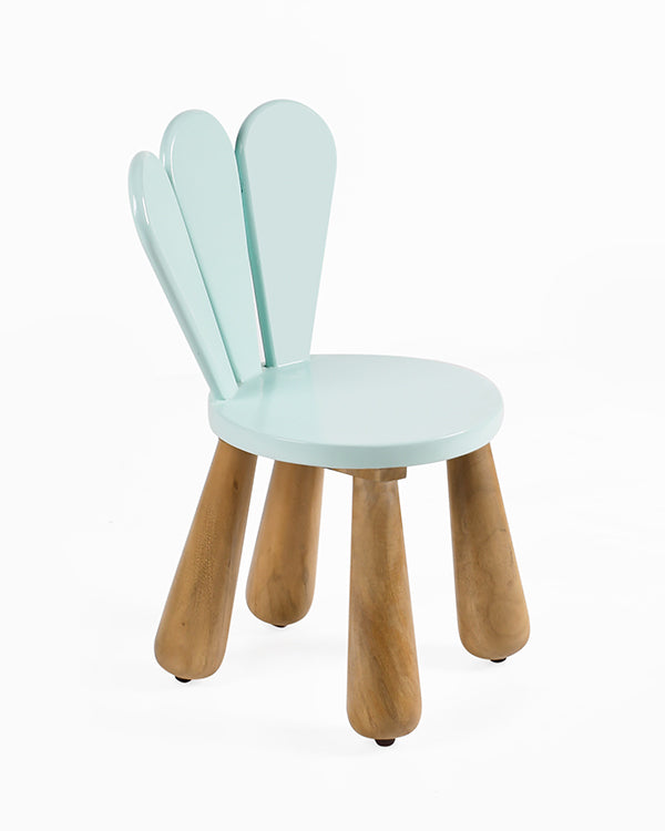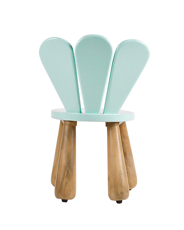 Included are two uniquely designed chairs, each inspired by delicate flower petals. One comes in a soft pink, the other in a soothing mint green—both featuring curved, petal-shaped backrests that combine ergonomic support with whimsical design. The chairs are lightweight yet strong, and the rounded corners and smooth edges make them extra safe for little ones.