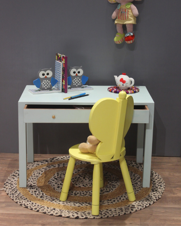 Create a beautiful and inviting study area for your child with our handpainted and handcrafted butterfly yellow chair and sea green study table set.