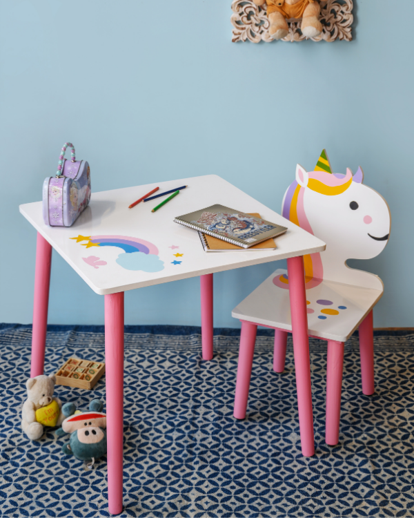 Create a magical and enchanting study space for your child with our Cute Unicorn Inspired Study Table and Chair Set.