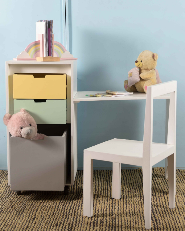 The study table's attached storage shelf and foldable functionality make it a versatile and practical choice for kids between the ages of 4 and 15.
