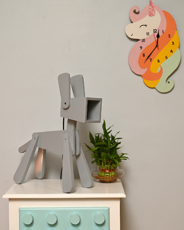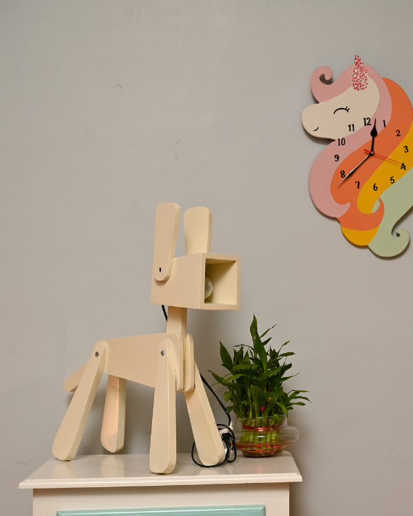 Add a fun twist to your child’s bedroom with our Adorable Wooden Dog-Shaped Night Table lamp—a perfect mix of playfulness and practicality. Thoughtfully crafted from premium mango wood, this lamp brings charm, warmth, and personality to any space.