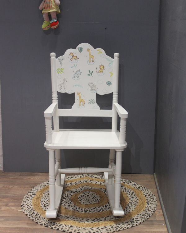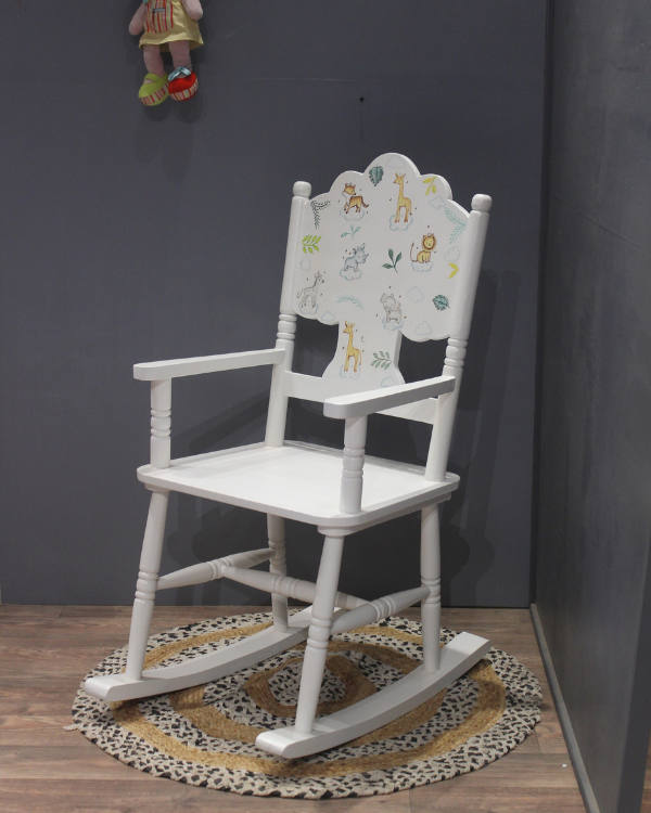Introducing our adorable Cute Animal Painted Rocking Chair, the perfect addition to your child's room or nursery.