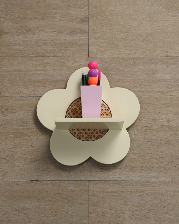 Kids Flower Wall Shelf ā Pastel Wall Decoration with Cane Detail