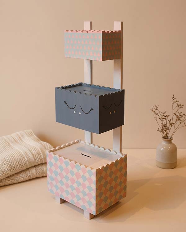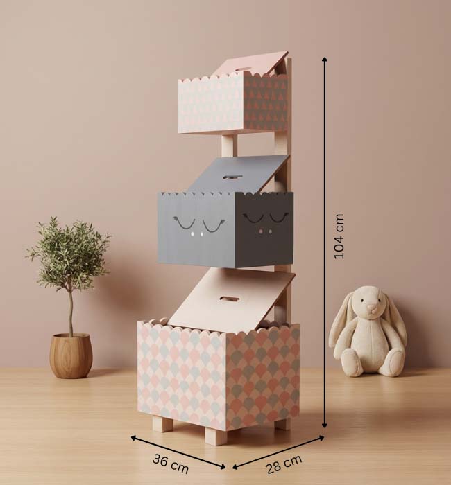 We designed this beautiful handpainted wooden 3-tier basket organizer for kids, which is durable and useful with 3 different-size baskets, which are perfect for storing all your kid's items, from clothes, toys, magazines, art and craft supplies, or other small personal items. Very easy to organize and very neat, suitable for a kid's room or home. This storage basket is beautiful in design and colour, which can also be good room decoration for your kids; you should have one. This is the perfect organizer for all the little stuff of your little one; it is very space-saving and convenient to take along. And this organizer comes with removable lids so you can use it as per your needs. The perfect size of this basket organizer makes it ideal for storing your stuff, such as toddler clothes, socks, sweatshirts, and other little things. It is a good storage helper.