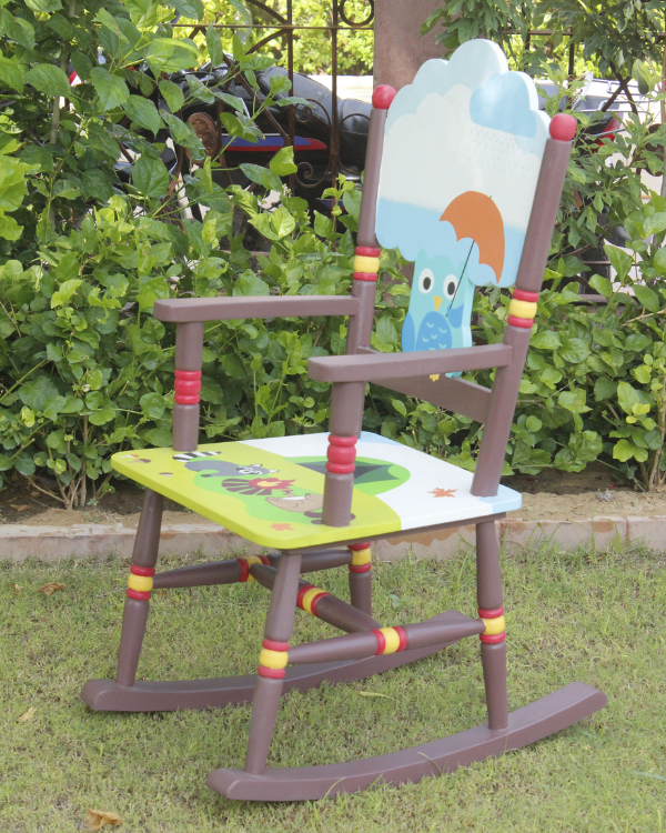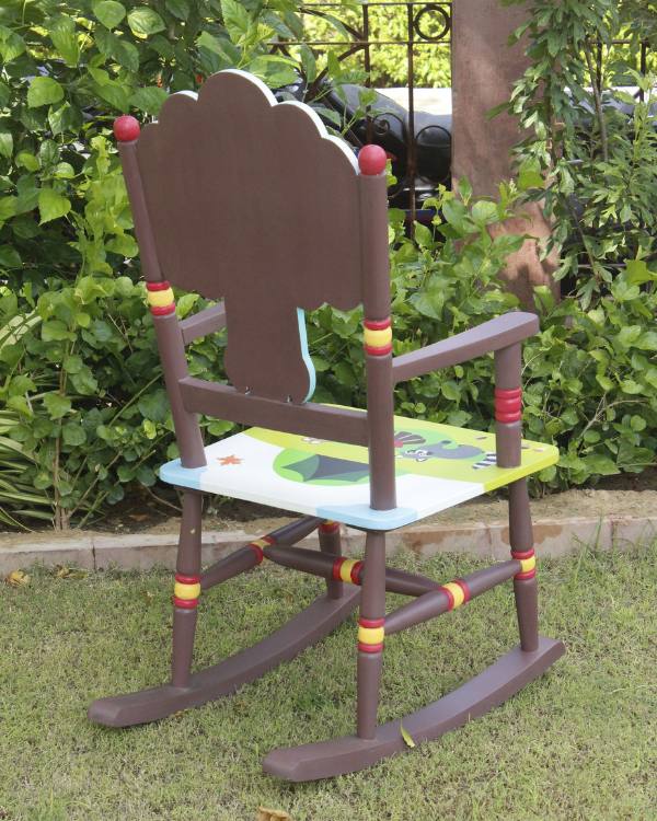 Cartoon Jungle Inspired Wooden Rocking Chair - Cute and Colorful Design for Kids