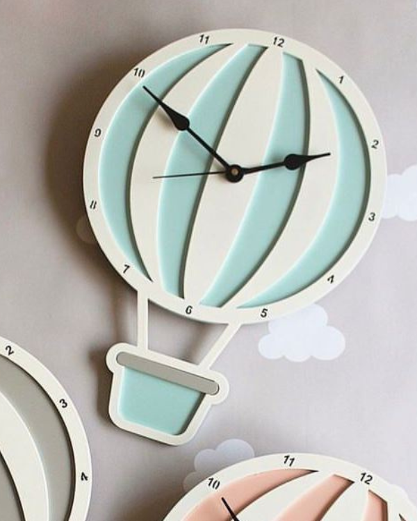 The captivating design and style of the clock resemble delightful hot air balloons floating in the sky.
