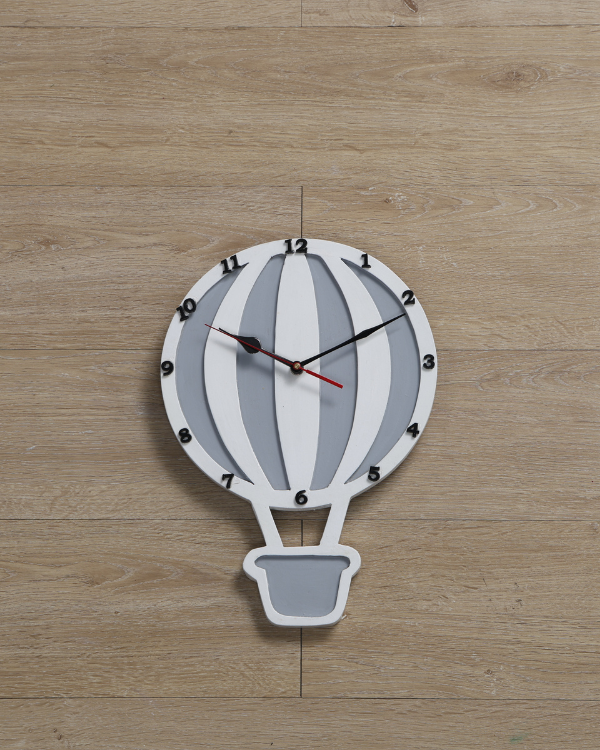 Our hot air balloon-inspired wooden wall clock is an ideal gift for birthdays, baby showers, or housewarmings.