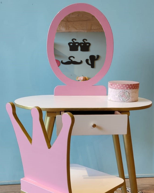 Whether you're decorating a bedroom, setting up a playroom, or looking for the perfect gift, this lovely design dressing table and chair will win hearts — both of kids and parents alike.