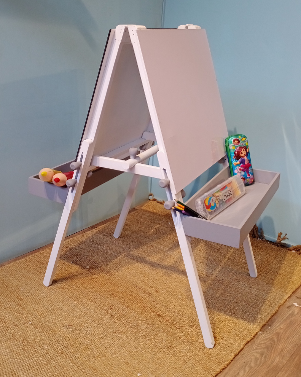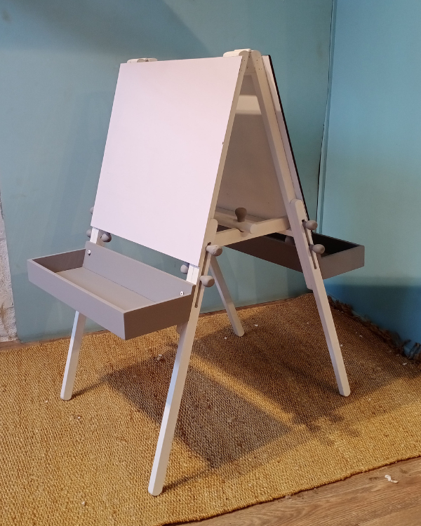 It's the 2-in-1 kid's drawing board for your children's creative needs made from mango wood and MDF. Both a blackboard and a whiteboard are where your kids can easily turn. One side is suitable for chalk, and the second side is for markers. Drawing is an important channel for children to express their feelings. For those who do not have verbal skills yet, drawing helps develop manipulative skills that will assist children to write quickly. Safeguard your walls from your kid's drawing and keep your children occupied and gadget-free with this wonderful product and a perfect gift for children.