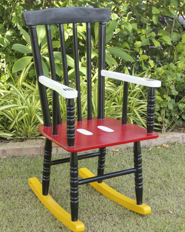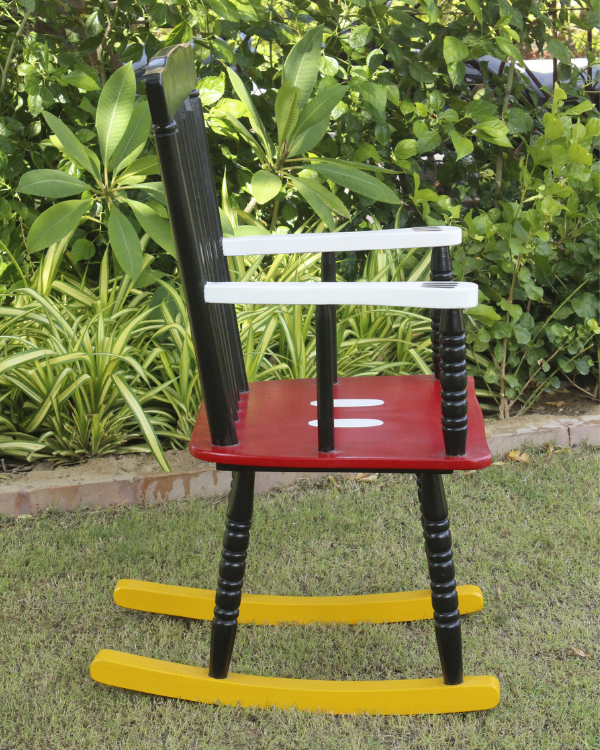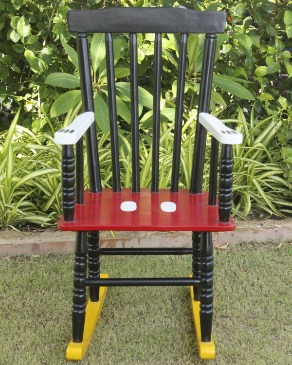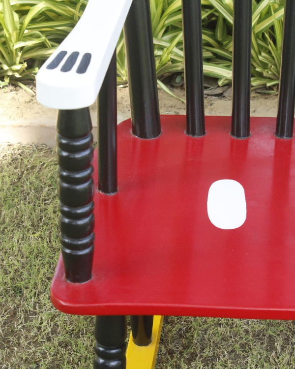 Designed with meticulous attention to detail, this rocking chair perfectly emulates the beloved Mickey Mouse character.