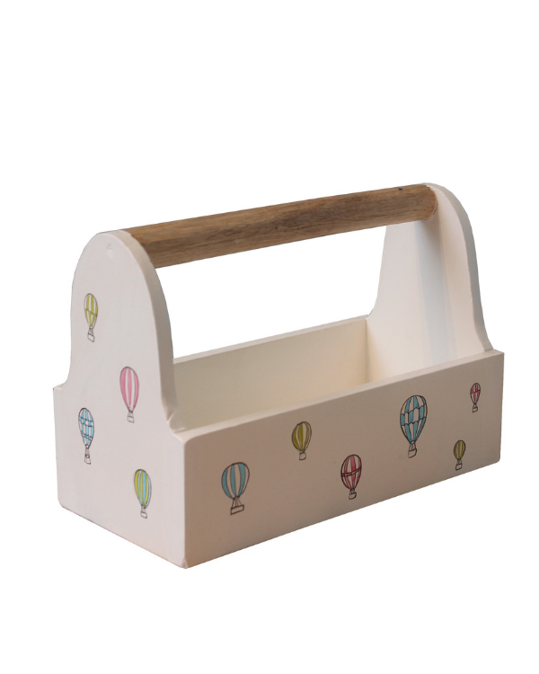 Small Utility Hot Air Balloon Themed Caddy/Tool Box for Kids, Wooden Tool Box, Gift for Child, Storage for Toddlers.