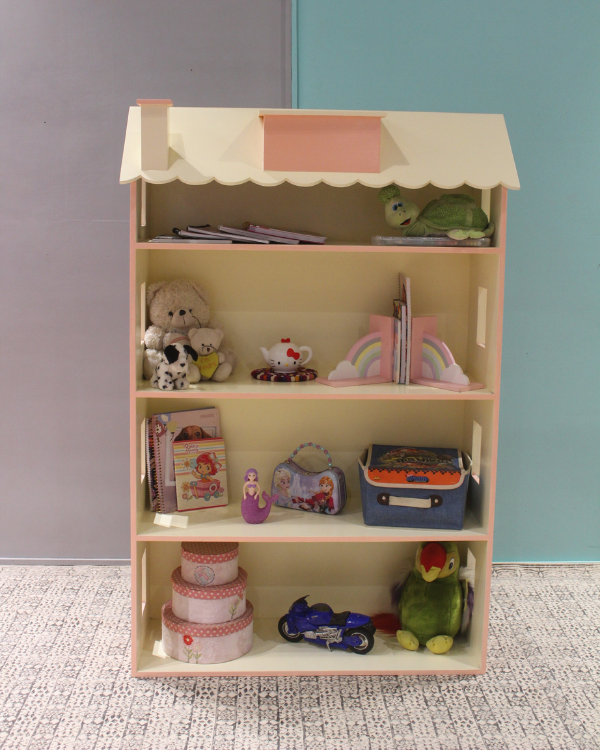 Additionally, the hand-painted peach pink, cream, baby blue, and white color palette adds a soft, pastel charm to any room—be it a study, playroom, or bedroom. It’s more than just a bookshelf. In fact, it’s a cheerful corner that nurtures a love for reading, creativity, and independence.