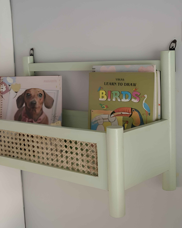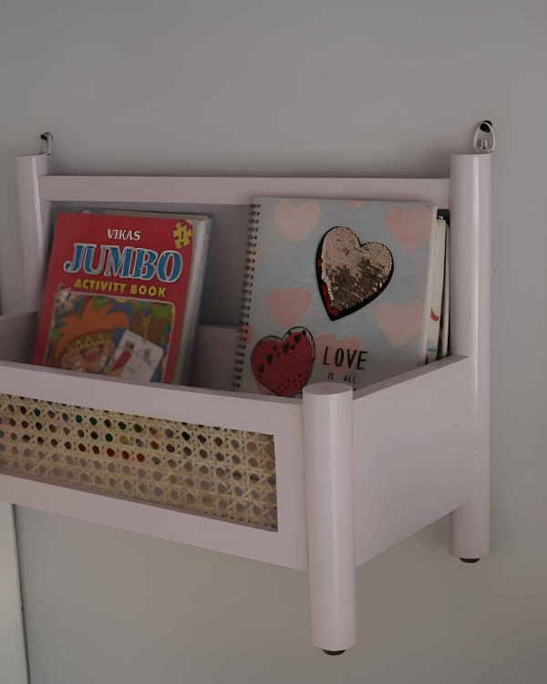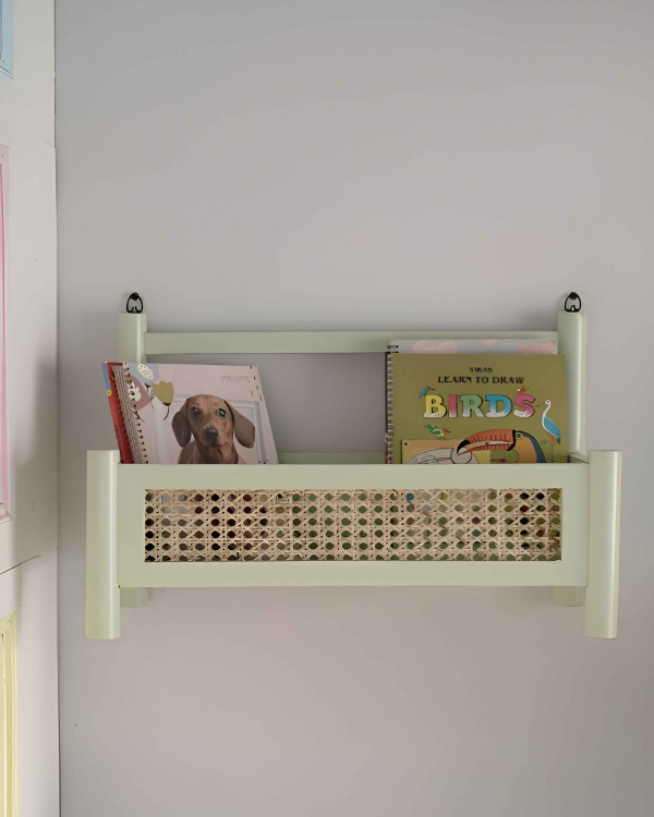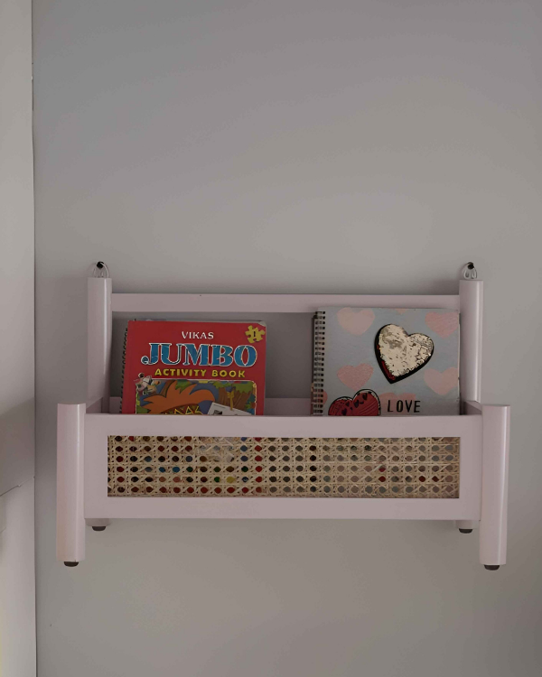 Bring charm and practicality to your child’s space with our Pastel Wall Shelf Organizer with Cane Front – a stylish and functional piece designed to declutter and delight. Made from durable mango wood, this organizer features a beautiful cane weave at the front, adding a natural touch to your interior while keeping essentials like books, toys, or art supplies neatly stored.